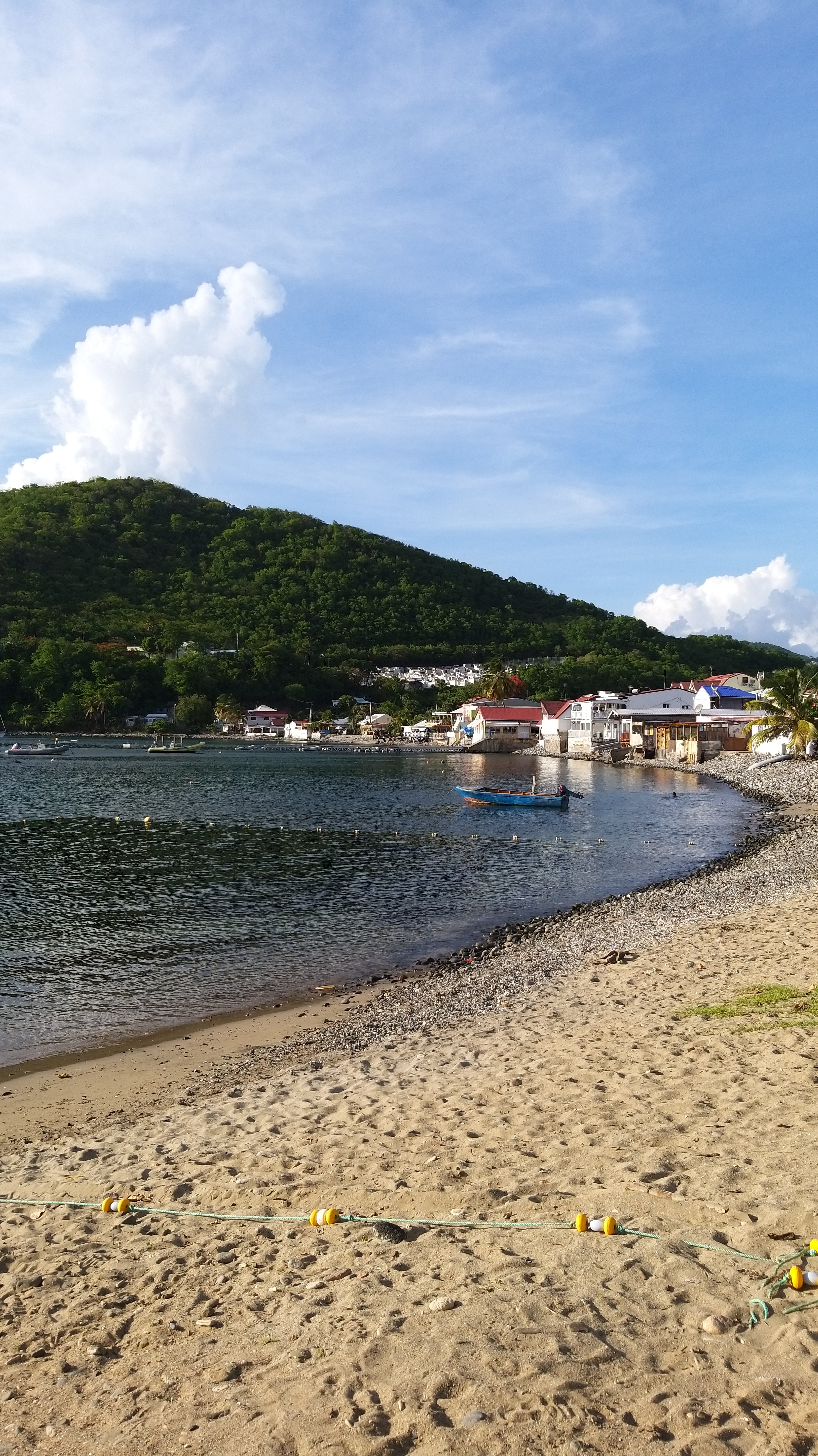 Ville côtière de la Guadeloupe. Plage de sable blanc des raisins clairs est bordée de palmiers. La GROTTE /Anse à la Gourde !